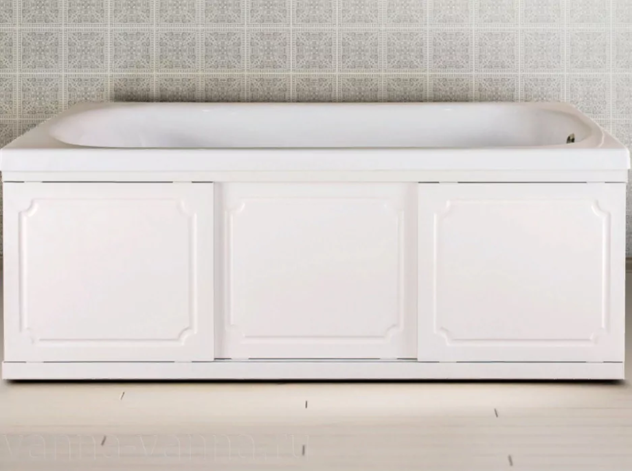 Простой перенос вертикальных стоек дает возможность установить экран под любую ванну, без переделки под сантехнические коммуникации.