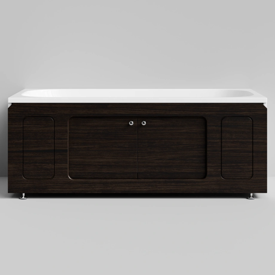 Экран под ванну раздвижной Vod-ok Лидер 150 см венге МДФ с накладными круглыми ручками. Две раздвижные двери по центру.