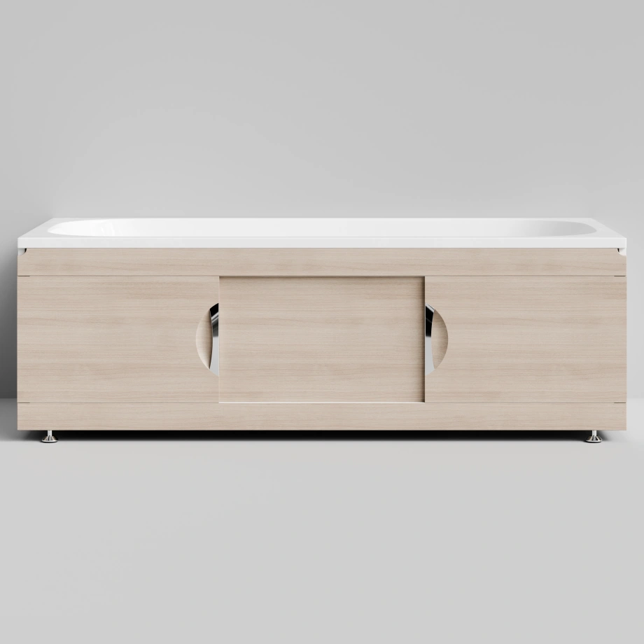 Экран под ванну раздвижной Vod-ok Топ 170 см дуб МДФ с двумя вертикальными ручками. Три раздвижные двери.