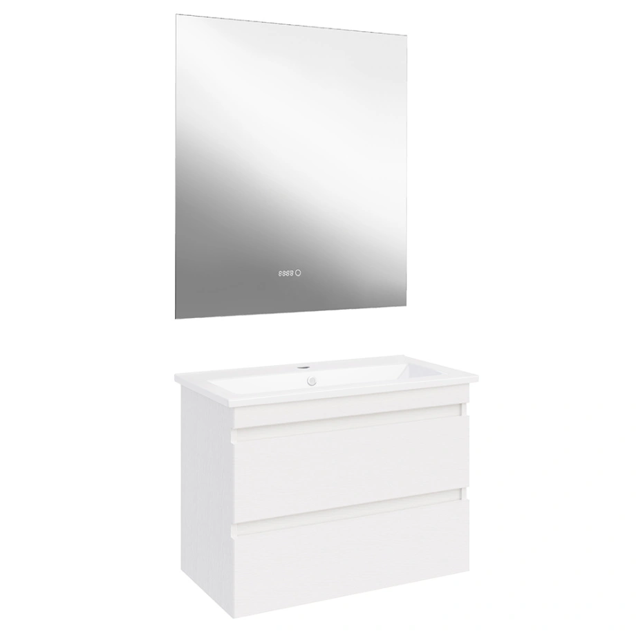 «Лира» выполнена в ЭКО стиле в цвете дуб и имеет белое исполнение. Корпус изготовлен из ЛДСП, а фасады изготовлены из влагостойкого МДФ, покрытого пленкой и структурно имитирующего натуральную текстуру дерева. Зеркало с сенсорным выключателем с часами. Подвесная конфигурация обеспечит легкую уборку пола. Ящики снабжены системой плавного и бесшумного закрывания. Коллекция мебели «Лира» – это качество и надёжность на долгие годы.