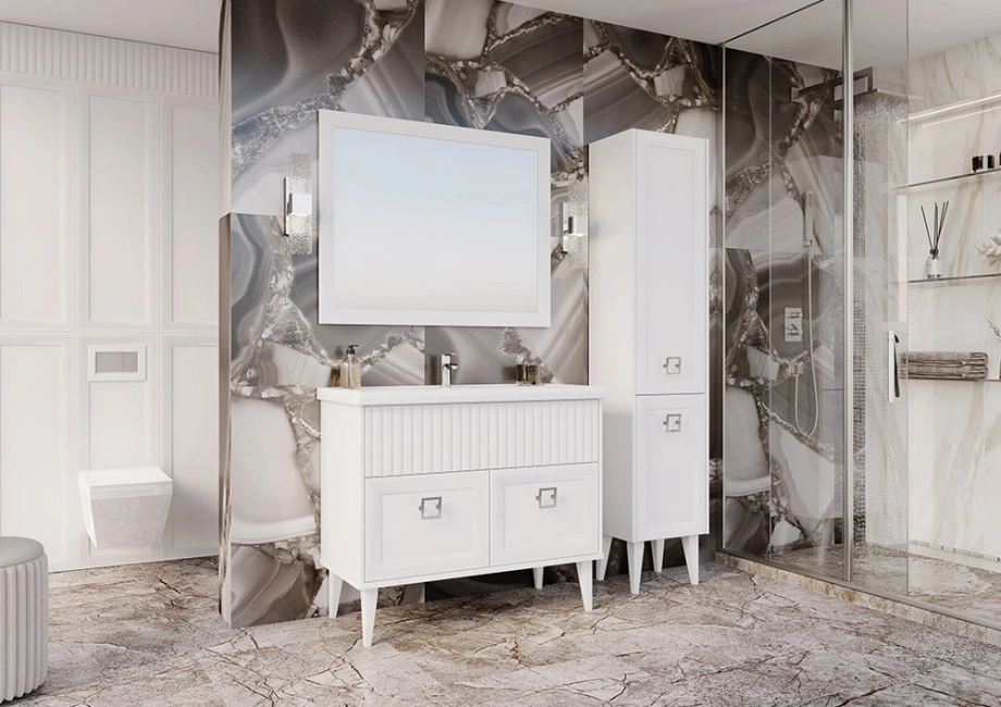 Мебель для ванной ASB Woodline Риола 100 комплект, напольный, белый, хром