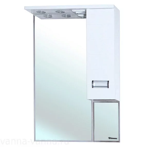 Зеркало для ванной с подсветкой Сиена 60 см левое/правое - 580х800х170 ШхВхГ. Светильников 2 шт, розетка, выключатель.