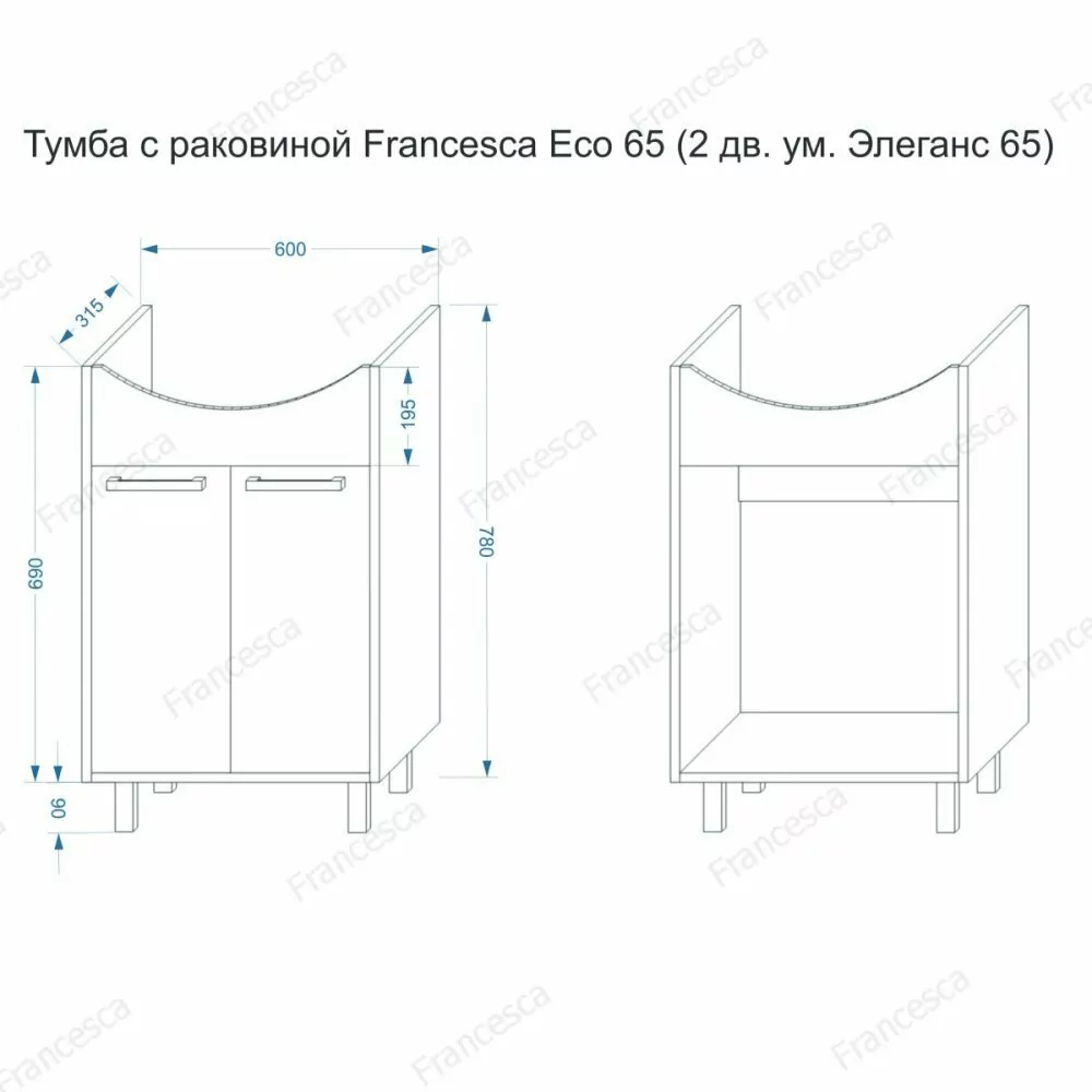 | Тумба Eco 65 | 600 | 780 | 315 |