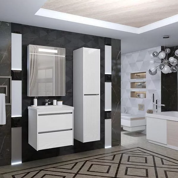 Тумба Фреш 60, раковина Frame 60 CeraStyle фаянс, зеркальный шкаф Фреш 60 с подсветкой.