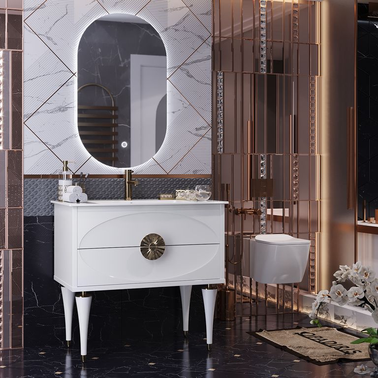 Мебель для ванной Opadiris Ибица 90 комплект, напольный, белый, золото.