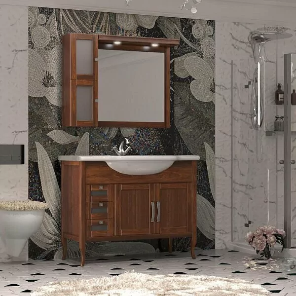 Тумба Мираж 100, раковина Cerastyle Классик 100, зеркало Мираж 100 с подсветкой и шкафчиком.
