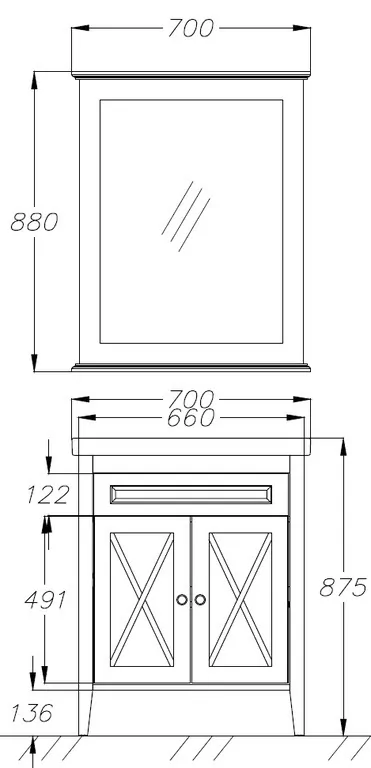 Тумба Палермо 70 (массив бука), раковина Cerastyle Frame 70 фаянс, зеркало Палермо 70.