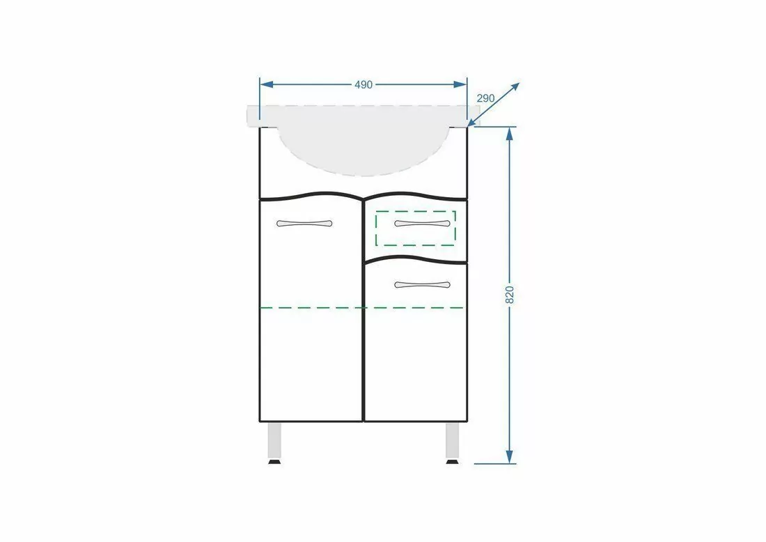 Тумба под раковину Stella Polar Волна 55 белый глянец две двери, 1 ящик. Задняя стенка тумбы отсутствует (имея специальную перегородку для жесткости), что дает доступ для подключения к коммуникациям. В тумбе одна полка. Ширина - 560 мм. Глубина - 460. Ножки высотой 10 см. Ручки - цвет хром.