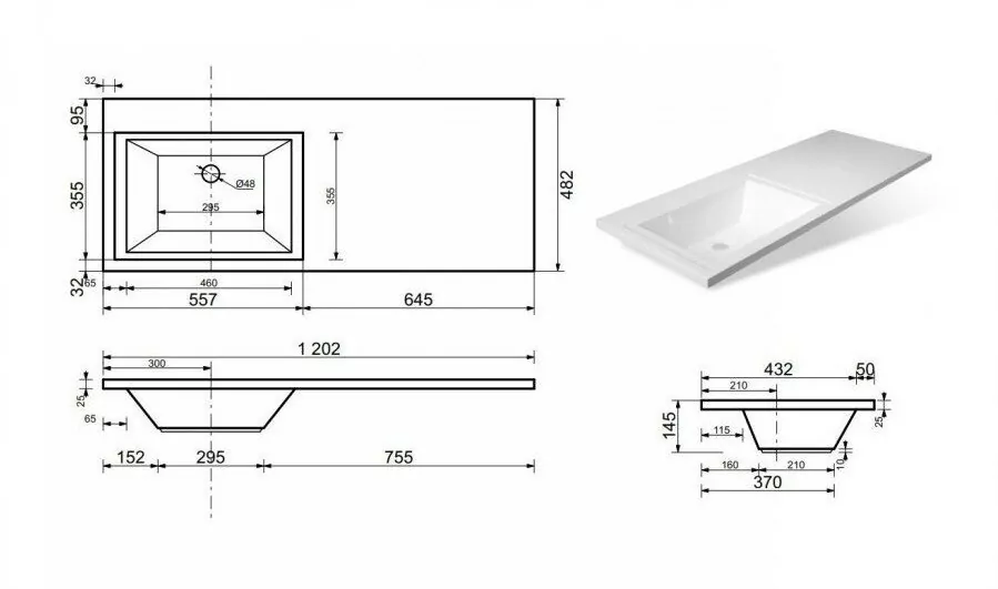 Размер раковины Эстет Даллас 120: 1202x482 мм. Материал: искусственный камень. Для сифона диаметром: 3.2 см. Донный клапан необходимо приобрести отдельно.