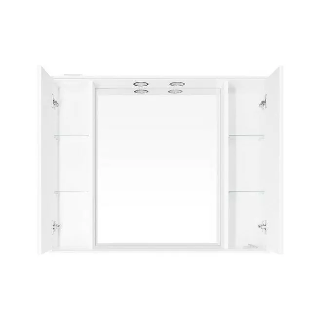 Размер зеркала Олеандр-2 100/С: 1000x160x830 мм. Материал корпуса: МДФ. Покрытие корпуса: ламинат/пленка. С электровыключателем (механической кнопкой). Фурнитура: бронза/белая. С механизмом доводчика, обеспечивающим плавное закрывание. Зеркало с розеткой.
