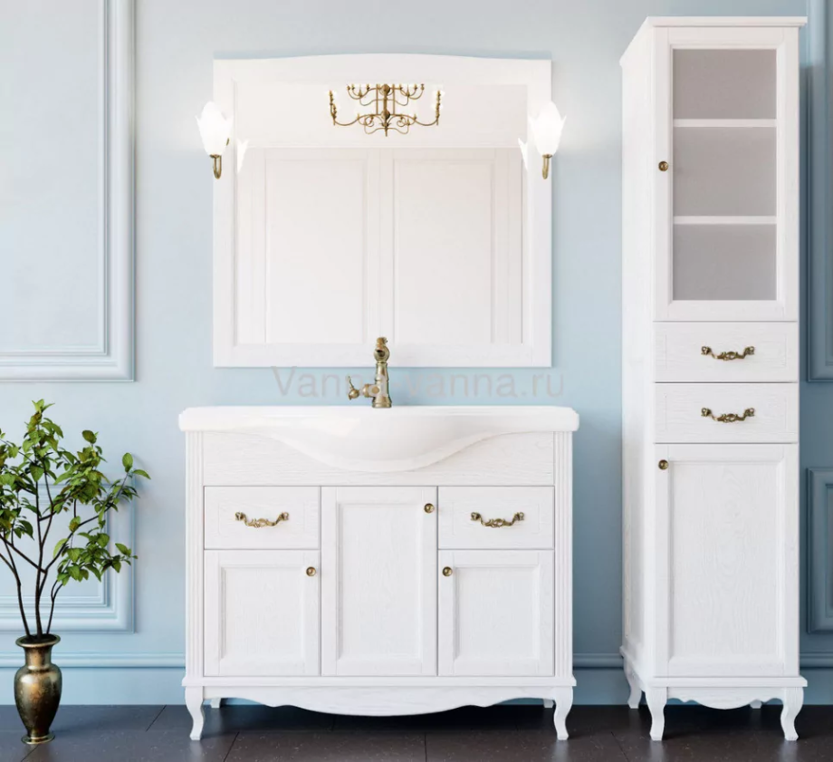 Мебель для ванной ValenHouse Эллина 105 белый, фурнитура бронза доставляется в собранном виде (ручки и другая фурнитура прикручиваются по месту установки).