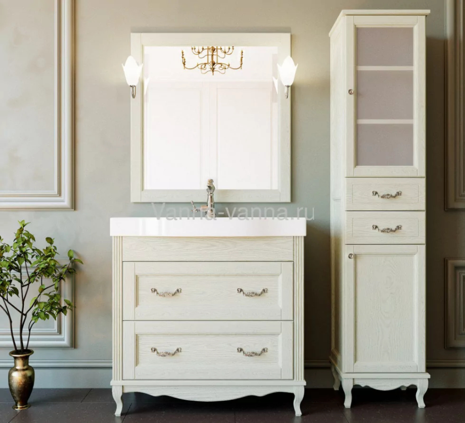 Мебель для ванной ValenHouse Лиора 90 слоновая кость, фурнитура хром доставляется в собранном виде (ручки и другая фурнитура прикручиваются по месту установки).