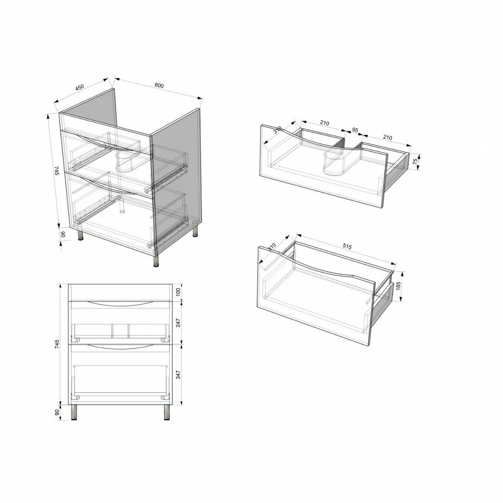 Тумба напольная Даниэль 60 с двумя ящиками, раковина Cersanit Como 60, зеркало Даниэль 60.