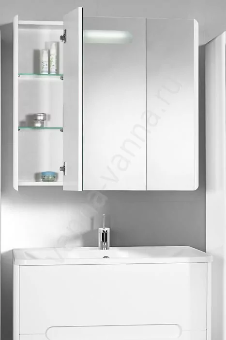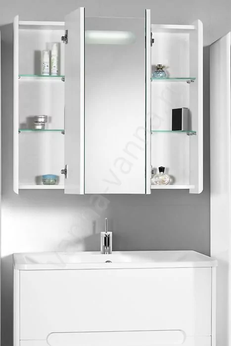 Зеркало для ванной Vod-ok Elite Флорена 80 см три дверки. Цвет фасад и корпус - белый. Материал основы - влагостойкий МДФ. Материал покрытия - эмаль Sayerlack Италия. Количество внутренних полок: 6 шт., материал стекло. Электрооборудование - свет, розетка, выключатель. Ширина - 800 мм. Высота - 750 мм. Глубина - 145 мм.
