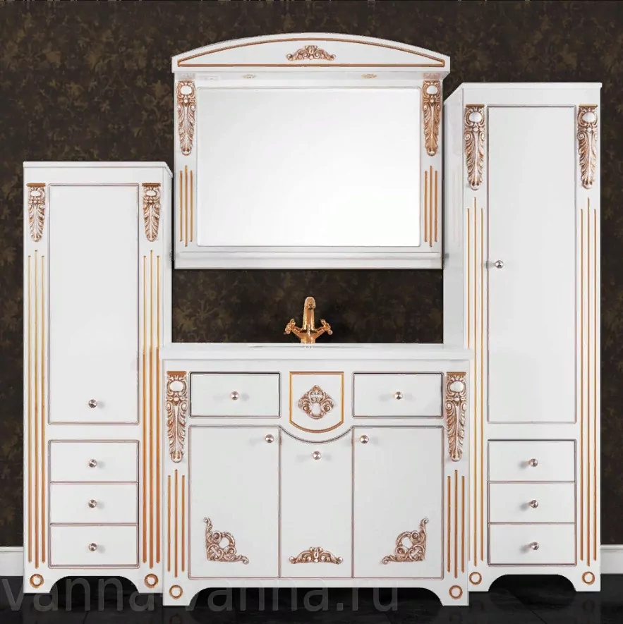 Мебель для ванной Vod-ok Elite Версаль 105 комплект, напольный, белый, патина серебро, золото