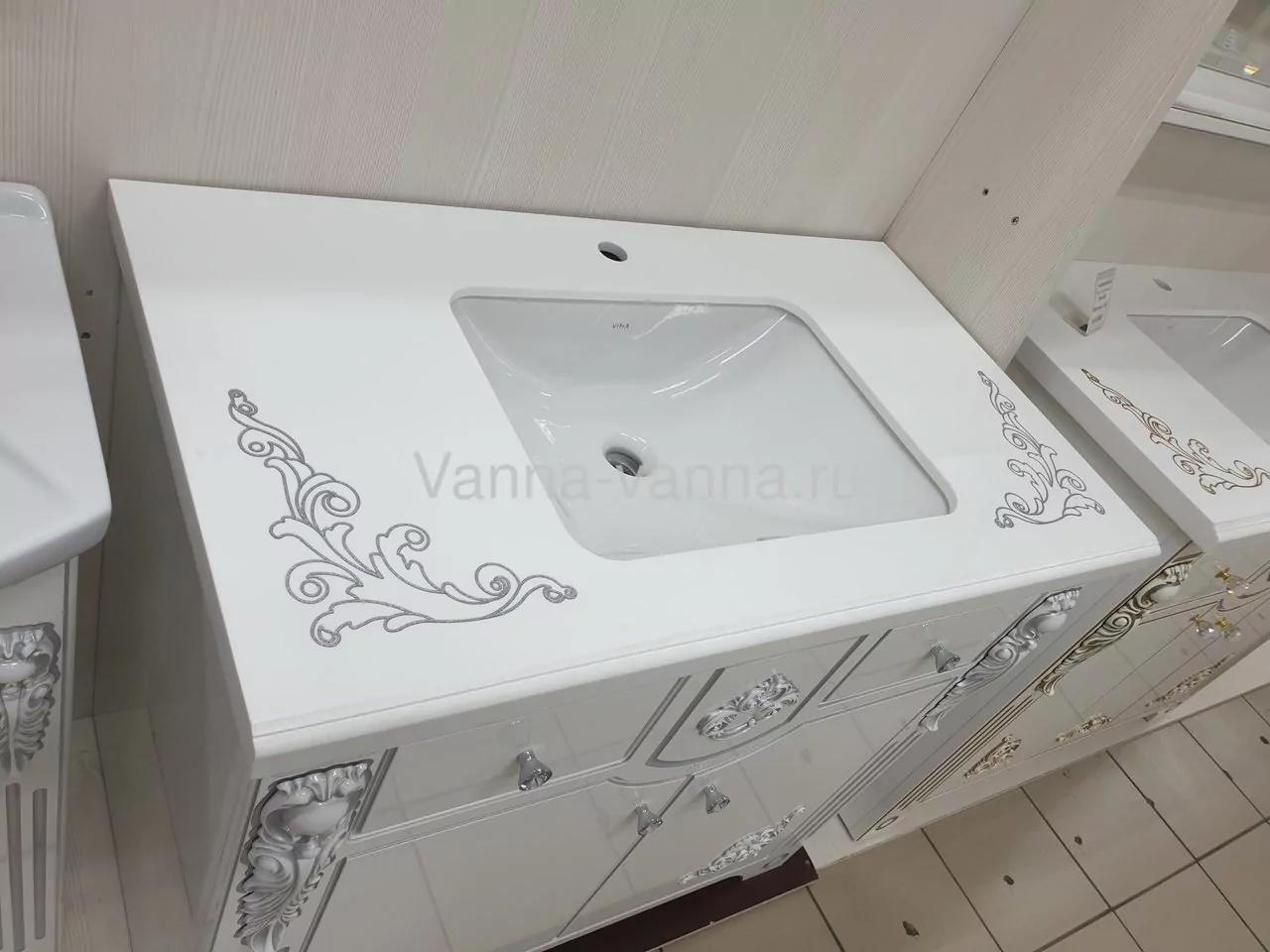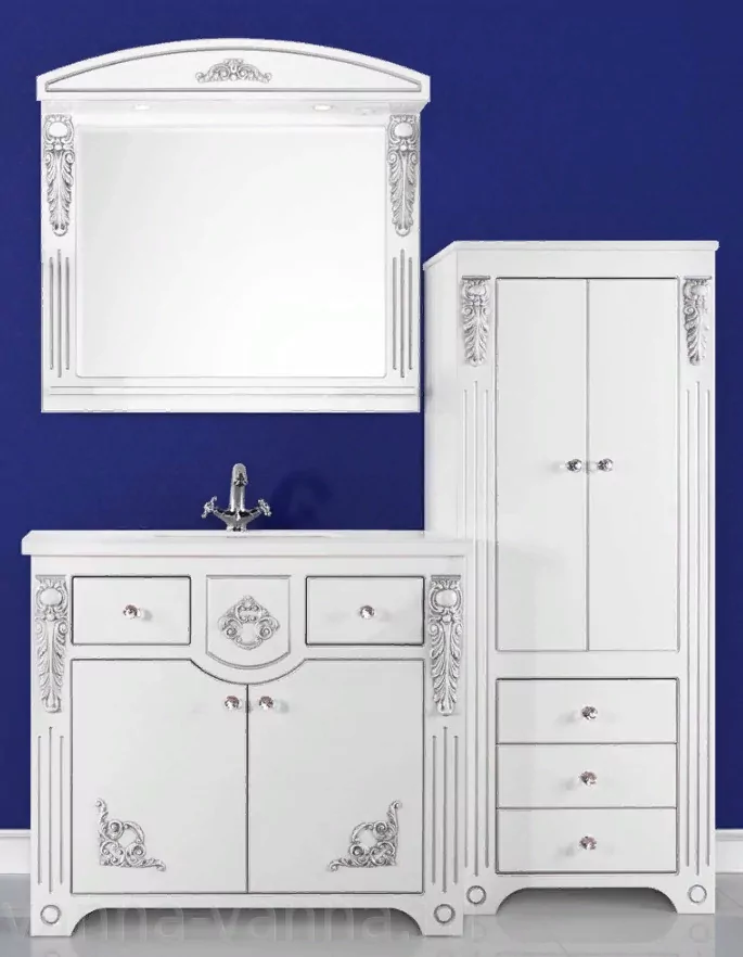 Мебель для ванной Vod-ok Elite Версаль 95 комплект, напольный, белый, патина серебро, золото