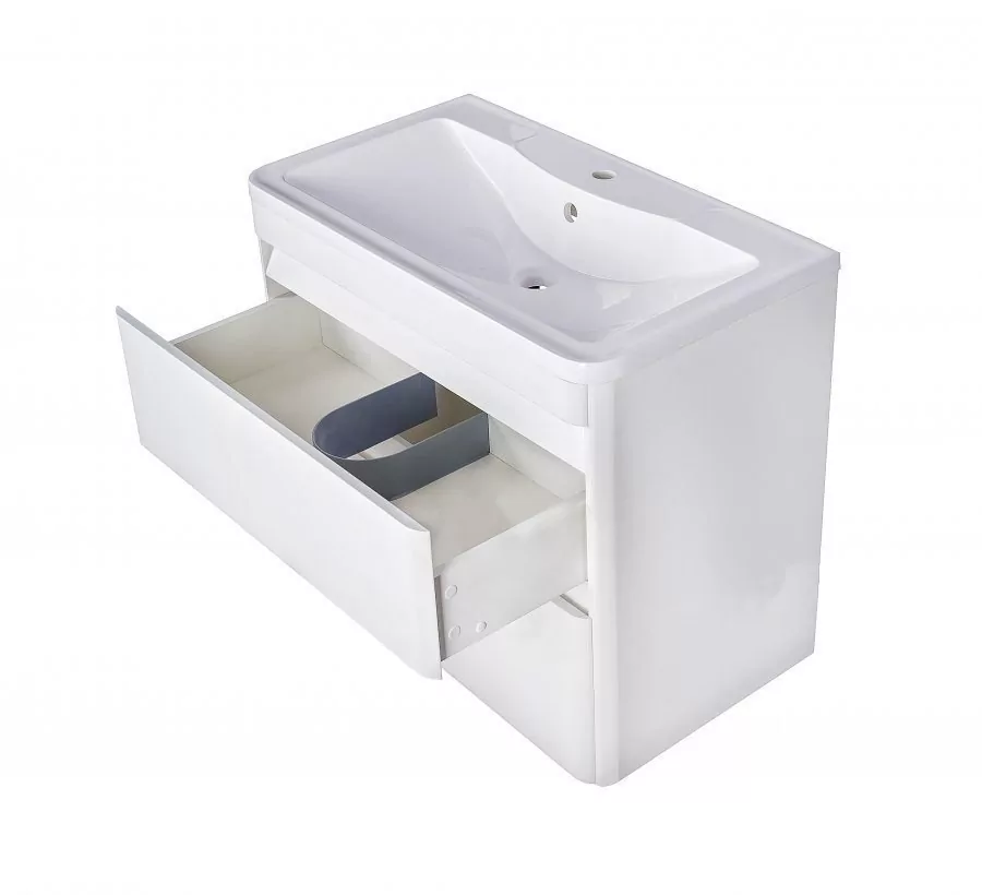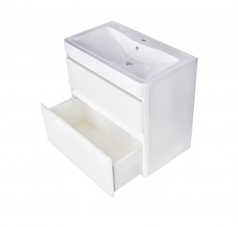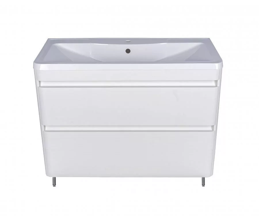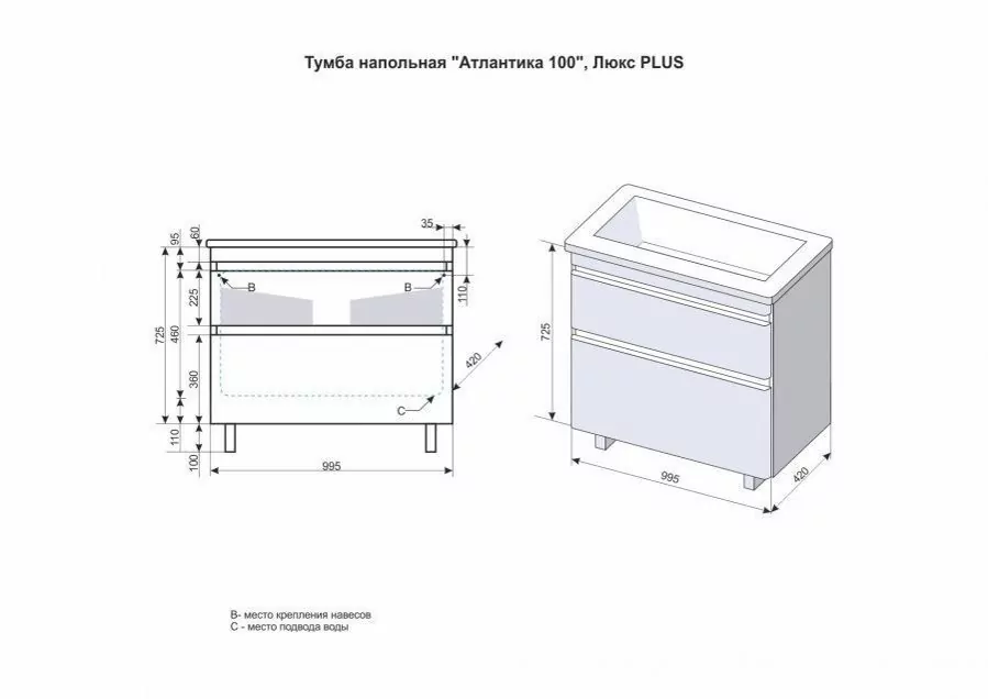 Размер тумбы: 995x420x835 мм. С механизмом доводчика, обеспечивающим плавное закрывание. Материал корпуса: МДФ. Покрытие корпуса: пленка. Материал фасада: МДФ. Покрытие фасада: пленка. Два ящика.
