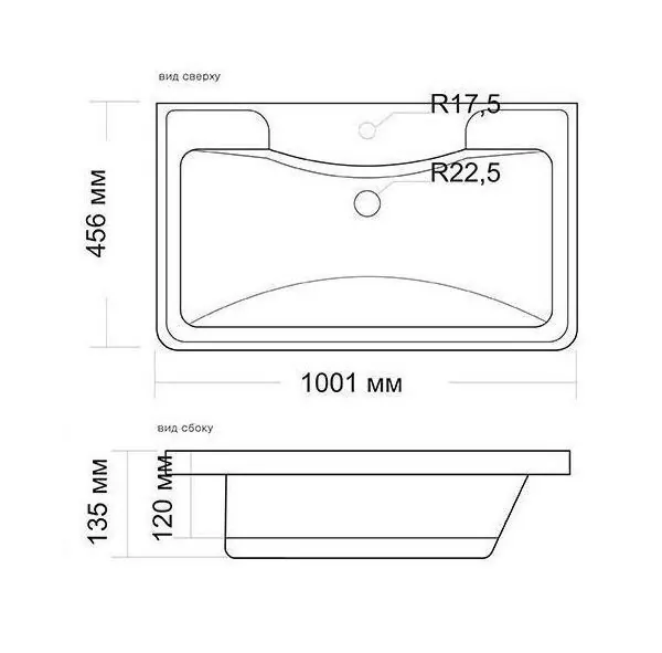 Размер раковины Атлантика 100: 1001x456 мм. Материал: искусственный мрамор. Для сифона диаметром: 3.2 см. Установка донного клапана не предусмотрена. Слив-перелив в комплекте.