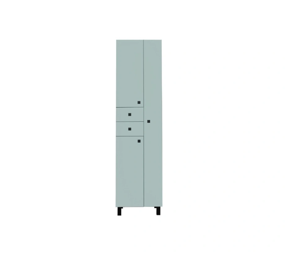 Шкаф пенал для ванной комнаты Runo - функциональное решение для недорогого и современного оформления ванной комнаты. Коллекция представлена в пяти цветах: пастельных - бирюзовый, бежевый; нейтральном - белом; и холодных нейтральных цветах - сером и тёмно-сером. Шкаф в ванную идеально впишется в любой интерьер ванной комнаты, пастельные цвета шкафа-пенала универсальны и применяются во многих стилях интерьера, создавая романтичную, мягкую и умиротворяющую атмосферу. Белый матовый цвет шкафа может использоваться в самых разнообразных стилях, включая скандинавский, минимализм, лофт, прованс, эко-стиль и классику, а также в монохромных и неоклассических интерьерах. Его универсальность позволяет применять белый для создания ощущения простора, света и чистоты, смягчения контрастов. Холодные нейтральные серых цветов шкафа широко используется в интерьерах, таких как классика, минимализм, хай-тек, лофт, скандинавский и экодизайн. Его универсальность позволяет использовать его как основу для ярких акцентов или для создания спокойной атмосферы. Шкаф-колонна напольный максимально продуман для удобной эксплуатации, справа - отделение для халатов с распашной дверью, слева - две дверцы и два выдвижных ящика. В нижнем и верхнем отделениях - по одной встроенной полке. Ящики - на шариковых направляющих, петли со встроенным доводчиком (верхняя петля с доводчиком, нижняя без доводчика), ручки-кнопки - 5шт, крючок в отделении для халатов - 1шт, ножки - 4 шт. Выпускается только в правом исполнении. Мебель для ванной RUNO - красота и практичность в мелочах!