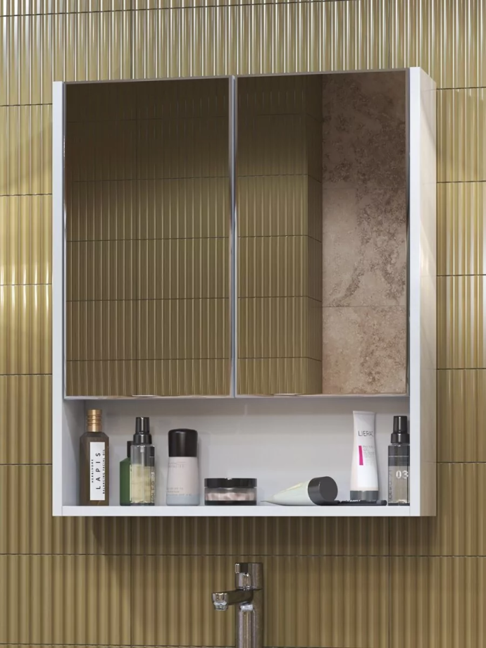 Размер - 600х154х700 мм. Материал фасада - ЛМДФ. Материал корпуса - влагостойкая ЛДСП. Покрытие корпуса: матовое. Покрытие фасада: глянцевая плёнка ПВХ. Две двери, петли с механизмом доводчика. Две полки из ЛДСП внутри. Одна открытая полка снизу.