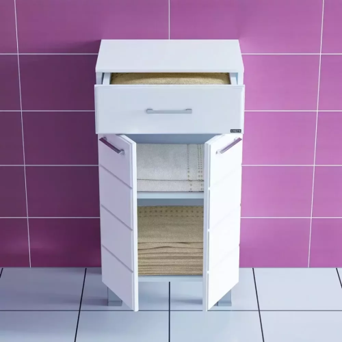 Тумбочка без раковины для ванной комнаты Санта Омега 45 см напольная, белая.