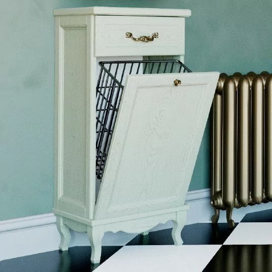 Тумбочка покрыта гладкой матовой эмалью, оберегающей мебель от изменений цвета и перепадов температур. Ящик с корзиной - полного выдвижения. Ручки накладные 2 шт. Ножки 4 шт.