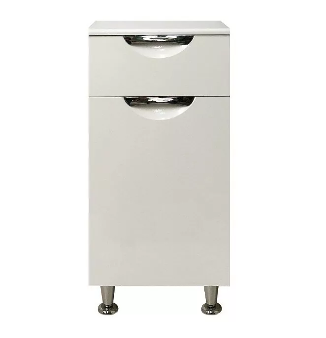 Все дверки снабжены системой бесшумного закрывания (петли с доводчиками). Открывание дверки на выбор налево или направо. Тумбочка Vod-ok Лира 40 см поставляется в собранном виде. (Фурнитура ручки и ножки не установлены и прикручиваются отдельно). Конструкция тумбы позволяет закрепить ножки в произвольном месте снизу мебели, что позволит Вам расположить мебель с учетом препятствий в виде плинтуса или труб. В комплект входит крепеж и вся необходимая фурнитура. Ящик выдвижной, механизм роликовый. В тумбе одна полка. Фурнитура - ножки и ручки хром. Ножки высотой 10 см. Ручки накладные 2 шт. Ножки 4 шт. Внутренняя полка лдсп 1 шт.