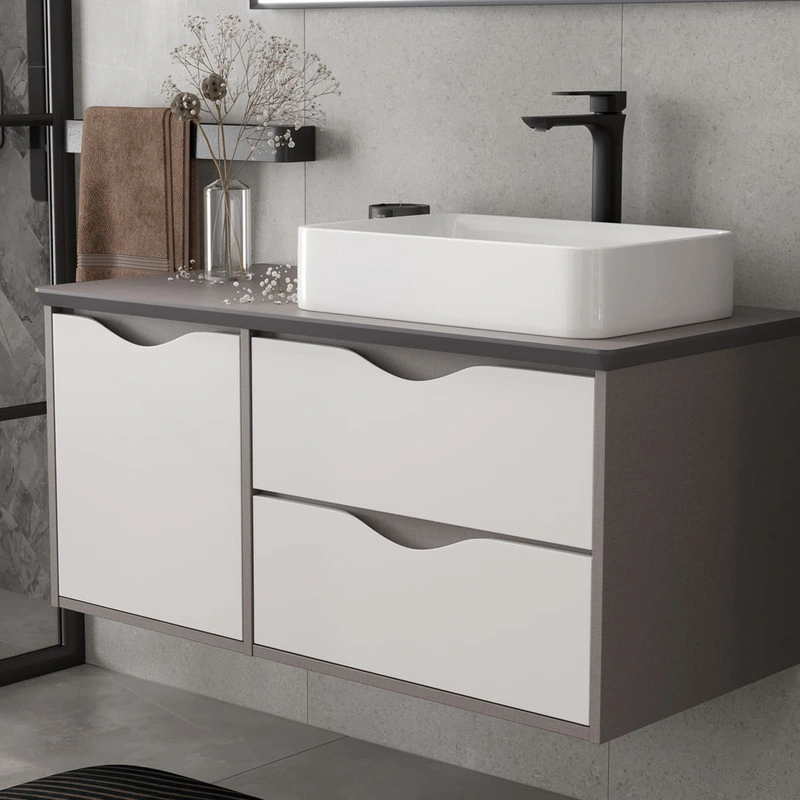 Тумба подвесная EQUIL Smile 40/60 со столешницей 100, 2 ящика, белый/лен антрацит