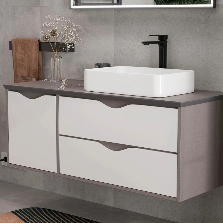 Тумба подвесная EQUIL Smile 40/80 со столешницей 120, 2 ящика, белый/лен антрацит
