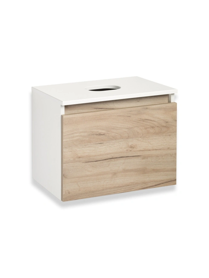 Тумба подвесная Runo Бари 50 под накладную раковину, крафт дуб/белый