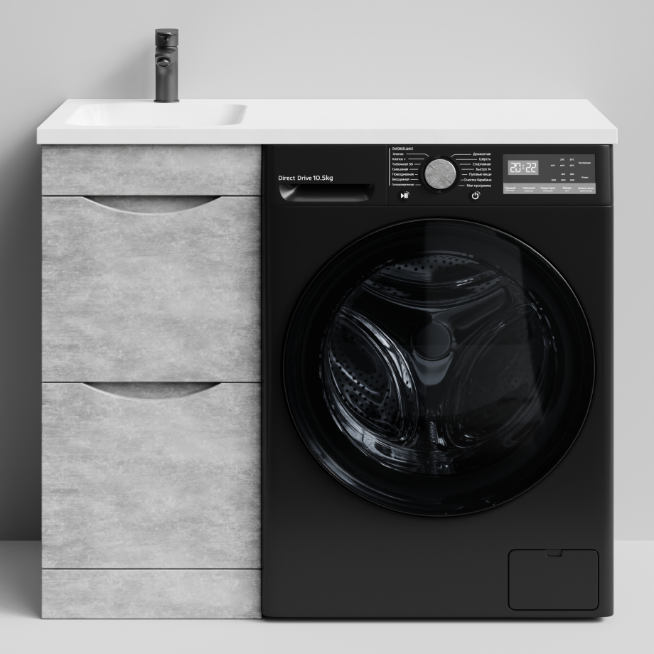 Тумба Vod-ok 38 с раковиной Смайл 100 напольная, под стиральную машину, левая, Горный камень