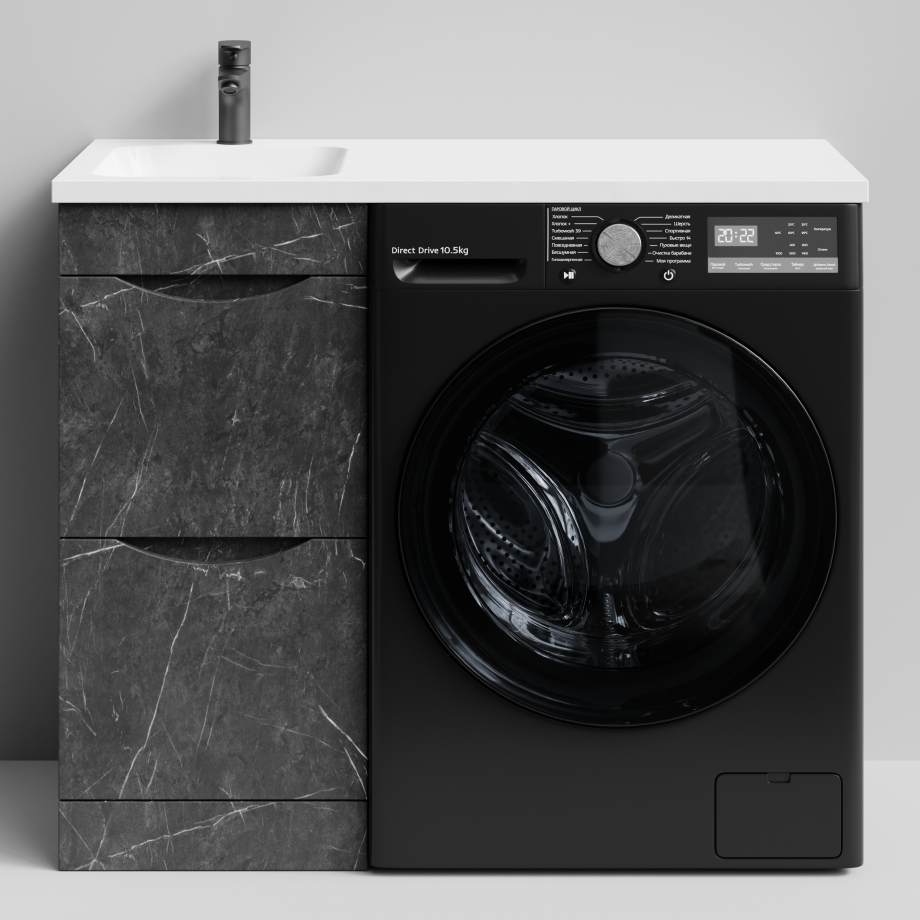 Тумба Vod-ok 38 с раковиной Смайл 100 напольная, под стиральную машину, левая, Мрамор Графит софт тач