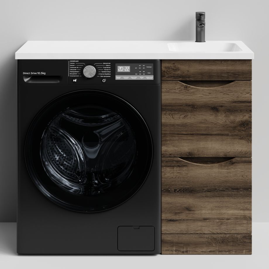 Тумба Vod-ok 38 с раковиной Смайл 100 напольная, под стиральную машину, правая, Дуб крымский коричневый