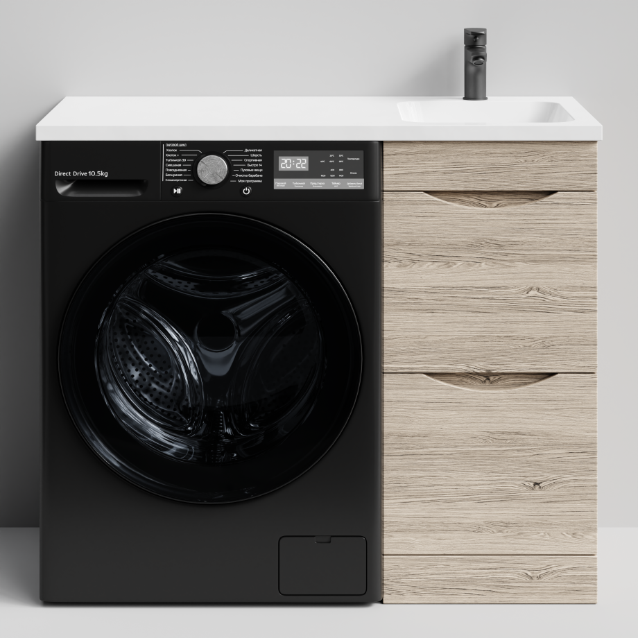 Тумба Vod-ok 38 с раковиной Смайл 100 напольная, под стиральную машину, правая, Дубослив ореховый светлый