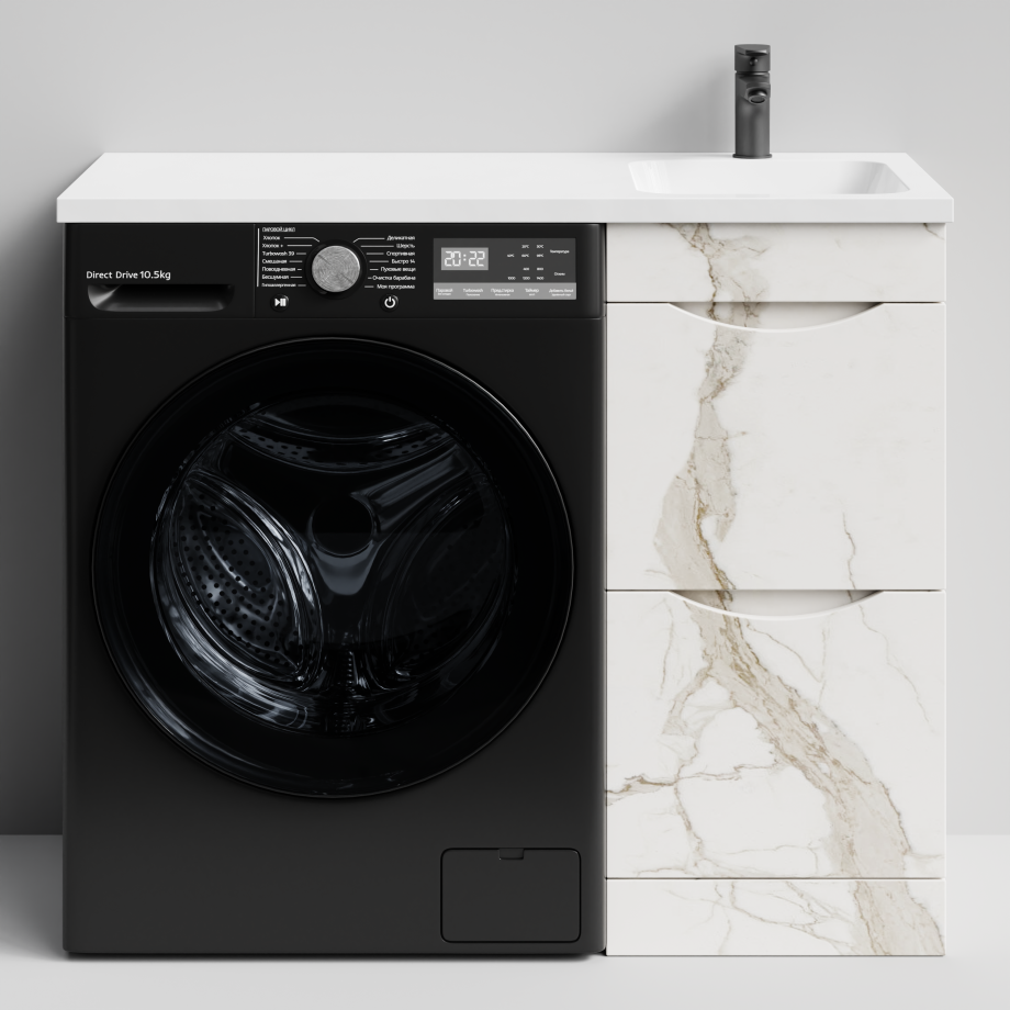 Тумба Vod-ok 38 с раковиной Смайл 100 напольная, под стиральную машину, правая, Мрамор Белый натур милк