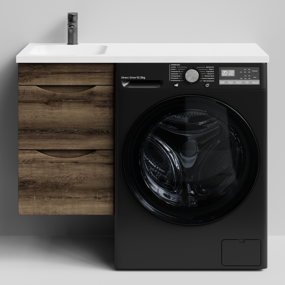 Тумба Vod-ok 38 с раковиной Смайл 100 подвесная, под стиральную машину, левая, Дуб крымский коричневый