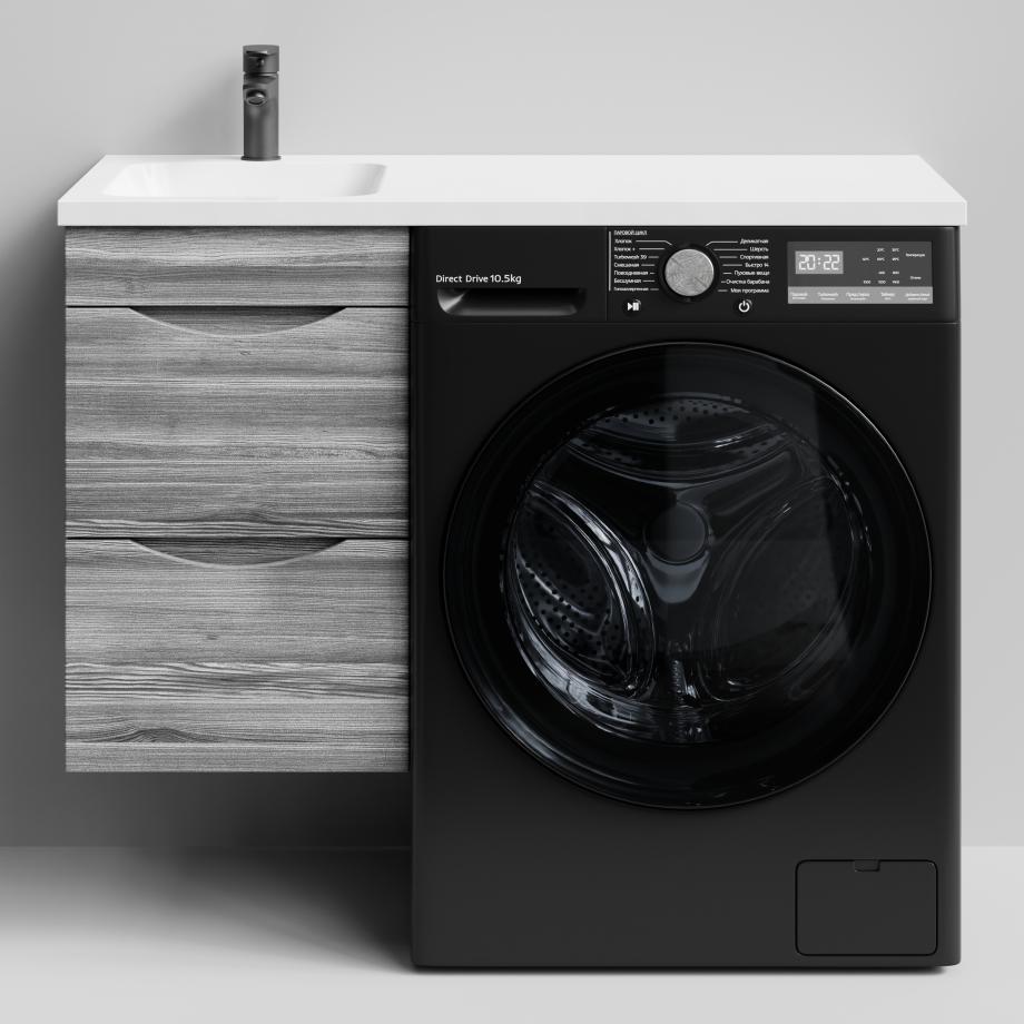 Тумба Vod-ok 38 с раковиной Смайл 100 подвесная, под стиральную машину, левая, Лиственница структурная контрастно-серая
