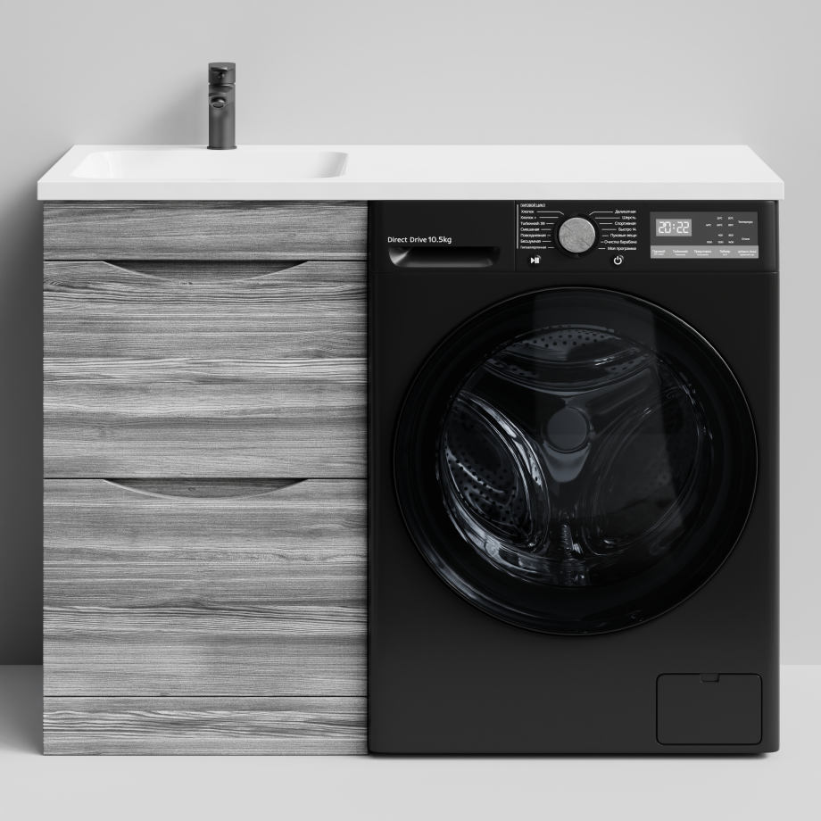 Тумба Vod-ok 48 с раковиной Смайл 110 напольная, под стиральную машину, левая, Лиственница структурная контрастно-серая