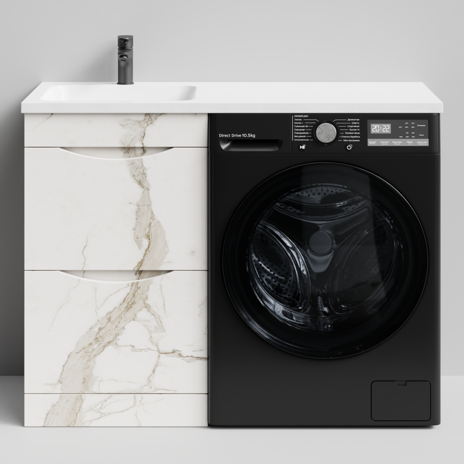 Тумба Vod-ok 48 с раковиной Смайл 110 напольная, под стиральную машину, левая, Мрамор Белый натур милк