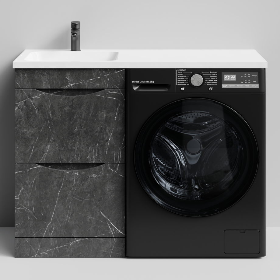 Тумба Vod-ok 48 с раковиной Смайл 110 напольная, под стиральную машину, левая, Мрамор Графит софт тач