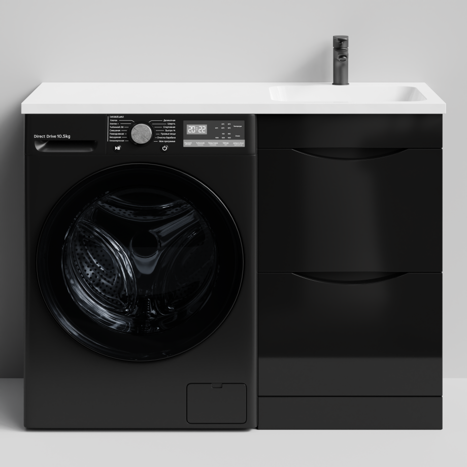Тумба Vod-ok 48 с раковиной Смайл 110 напольная, под стиральную машину, правая, черный глянец