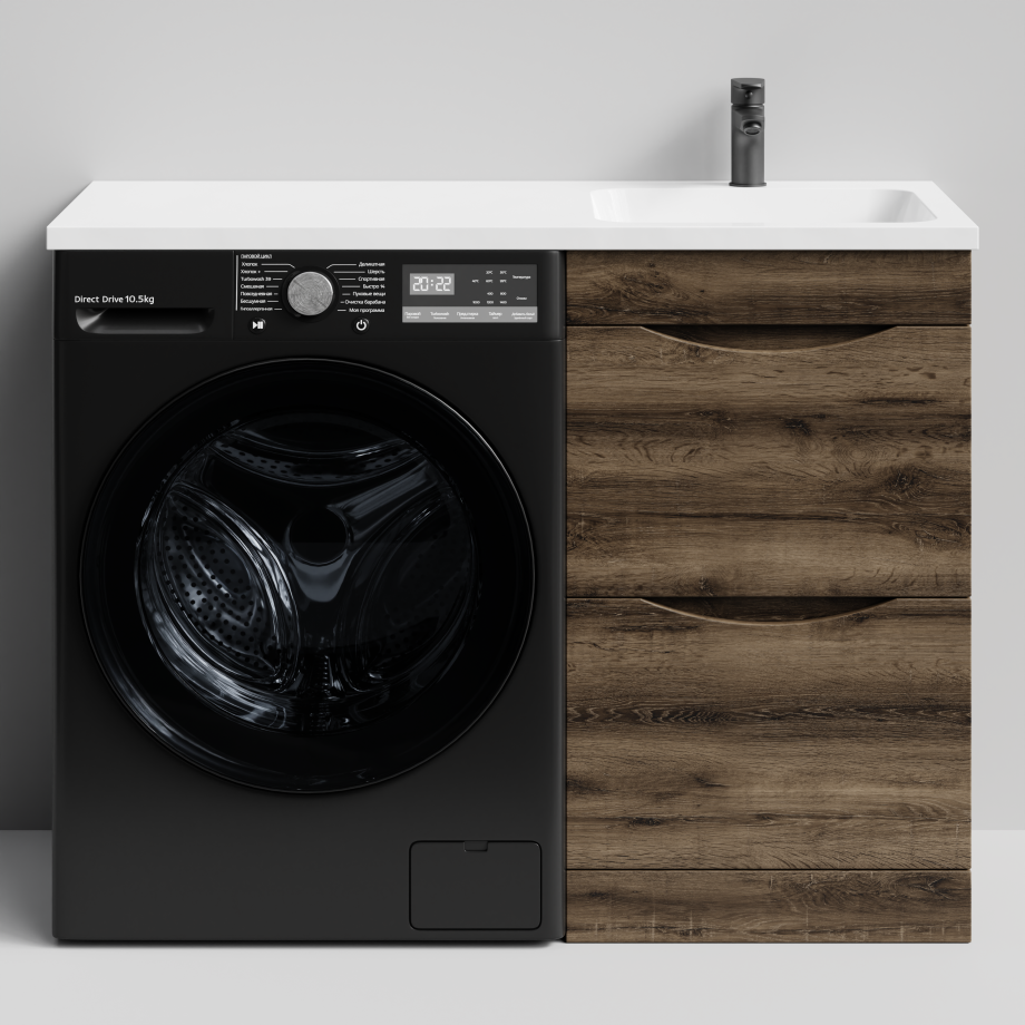 Тумба Vod-ok 48 с раковиной Смайл 110 напольная, под стиральную машину, правая, Дуб крымский коричневый