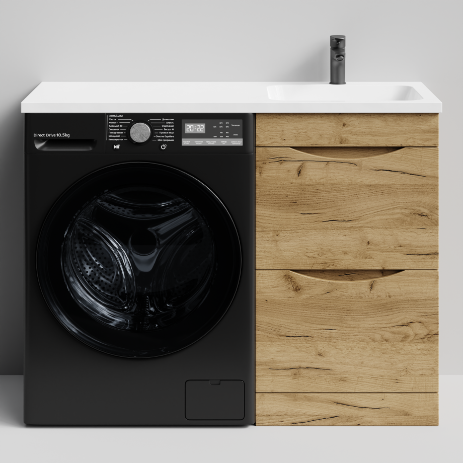 Тумба Vod-ok 48 с раковиной Смайл 110 напольная, под стиральную машину, правая, Дуб Тортуга