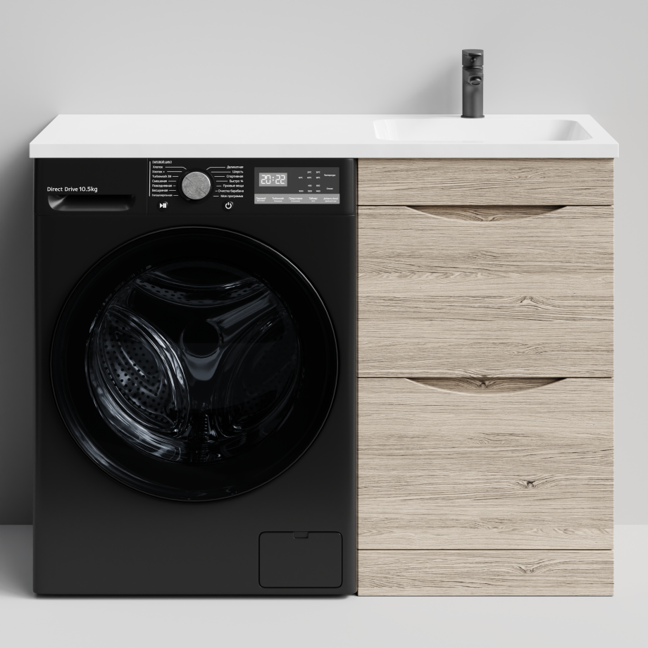 Тумба Vod-ok 48 с раковиной Смайл 110 напольная, под стиральную машину, правая, Дубослив ореховый светлый