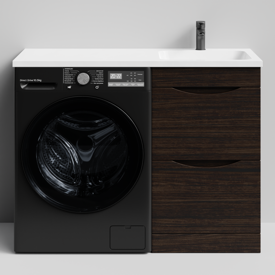 Тумба Vod-ok 48 с раковиной Смайл 110 напольная, под стиральную машину, правая, Палисандр
