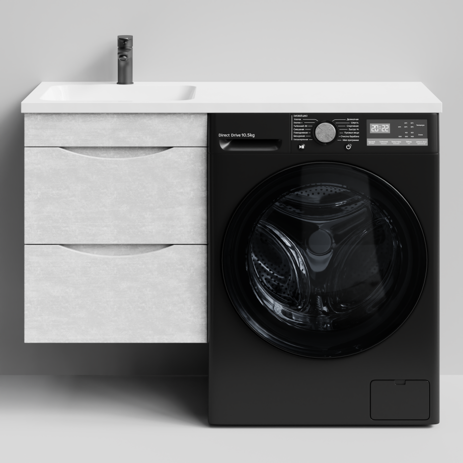 Тумба Vod-ok 48 с раковиной Смайл 110 подвесная, под стиральную машину, левая, Белый камень