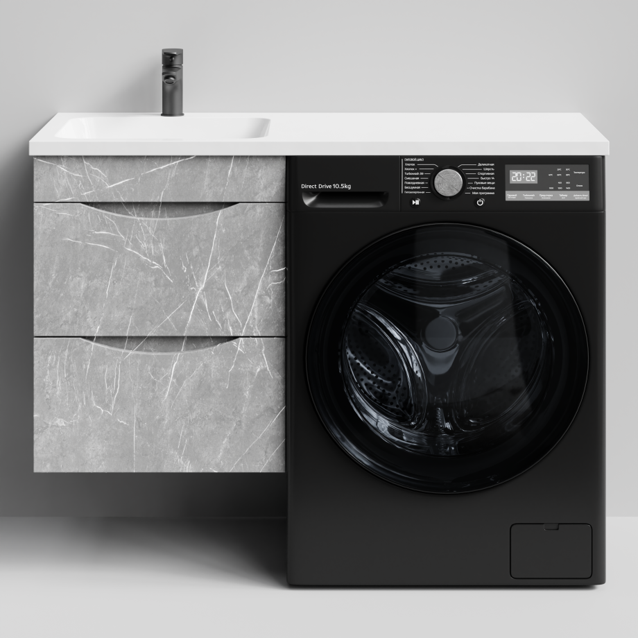 Тумба Vod-ok 48 с раковиной Смайл 110 подвесная, под стиральную машину, левая, Мрамор Белый софт тач