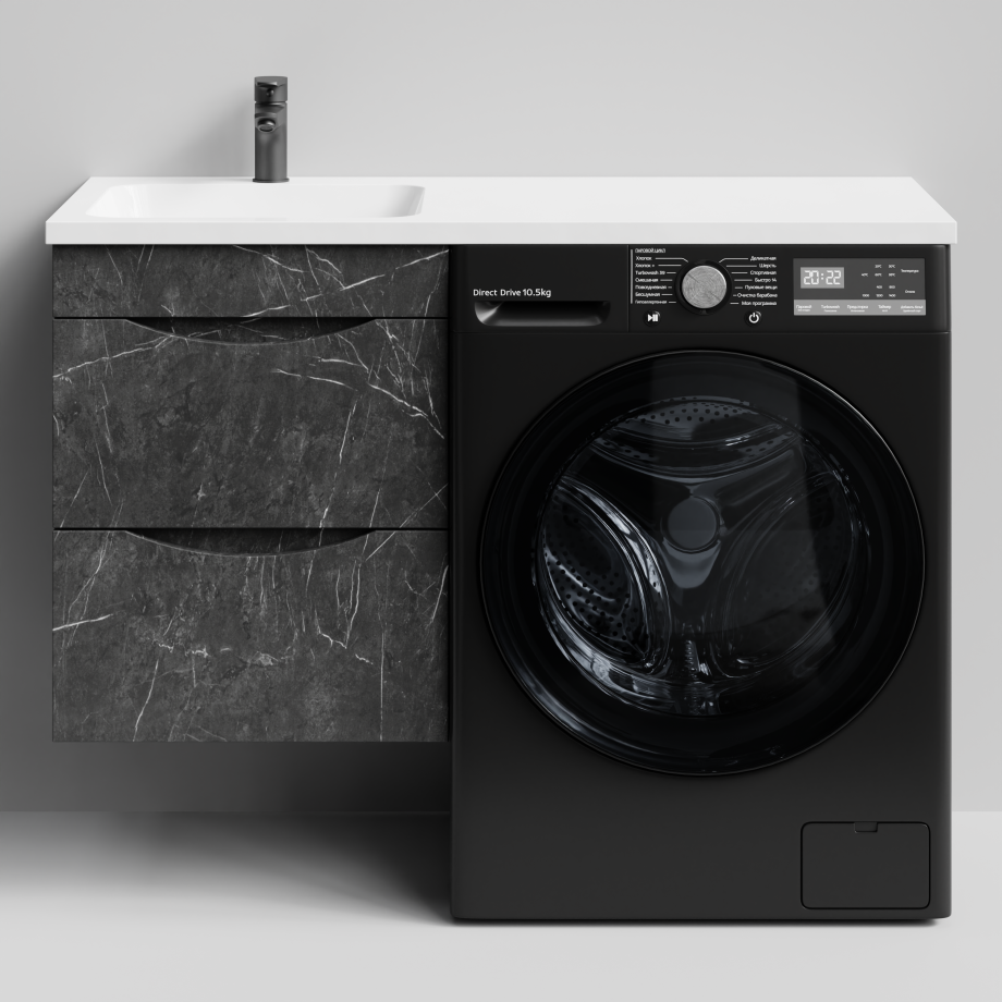 Тумба Vod-ok 48 с раковиной Смайл 110 подвесная, под стиральную машину, левая, Мрамор Графит софт тач