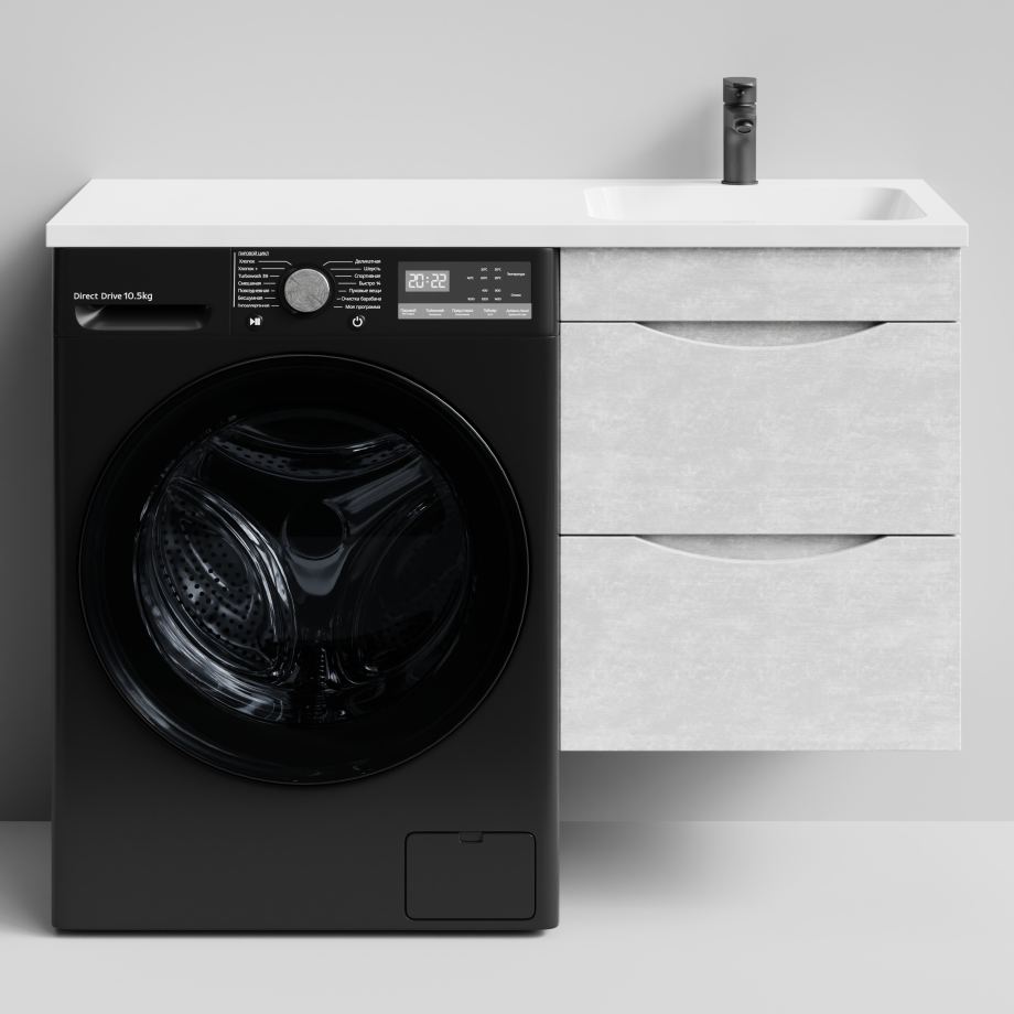 Тумба Vod-ok 48 с раковиной Смайл 110 подвесная, под стиральную машину, правая, Белый камень