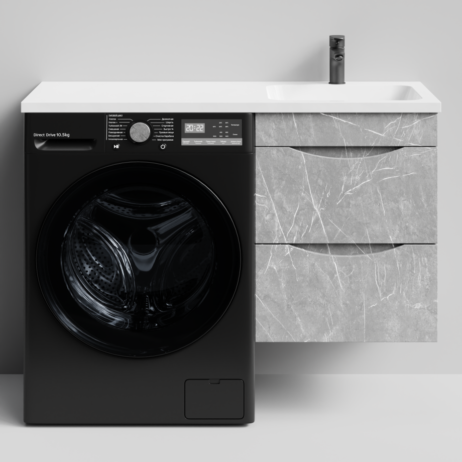 Тумба Vod-ok 48 с раковиной Смайл 110 подвесная, под стиральную машину, правая, Мрамор Белый софт тач